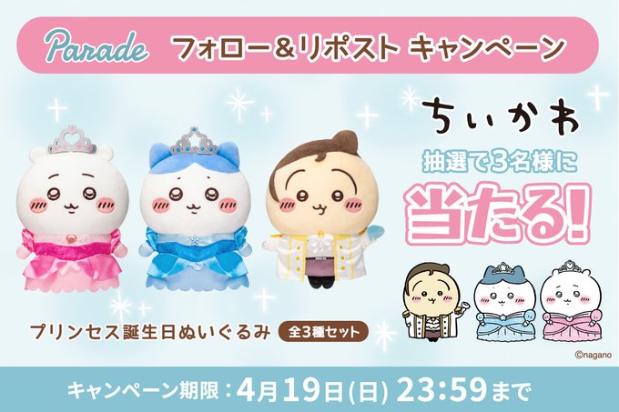 賞品:プリンセス誕生日ぬいぐるみ(全3種)のセット(3名様)