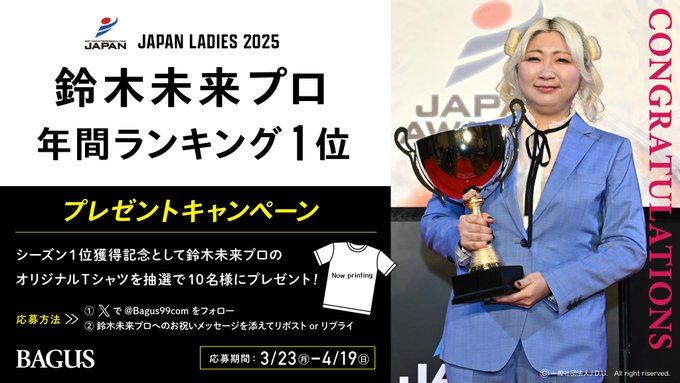 賞品:鈴木未来プロの限定オリジナルTシャツ(10名様)