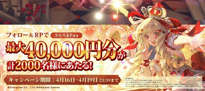 賞品:えらべるPay最大40,000円分(合計2,000名様)