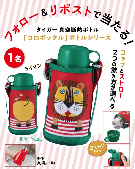 賞品:タイガー魔法瓶「コロボックルシリーズ キッズボトル(水筒)」新デザインの「ライオン」(1名様)