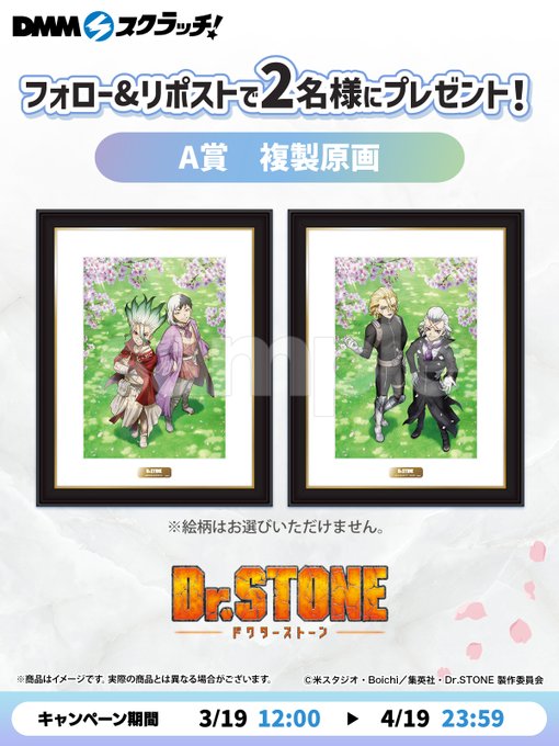 賞品:TVアニメ『Dr.STONE』桜 スクラッチ A賞 複製原画(2名様)