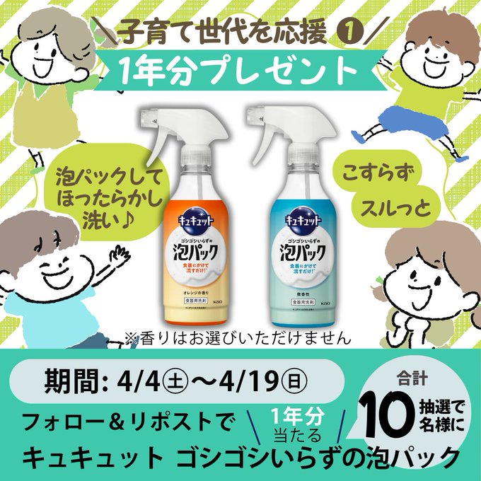 賞品:キュキュットゴシゴシいらずの泡パック 1年分(10名様)