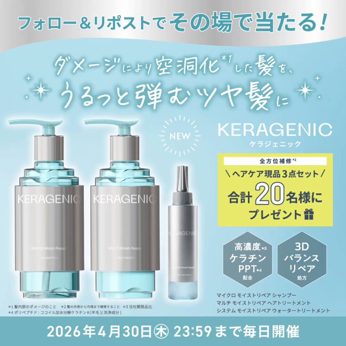 【毎日・X懸賞】ヘアケア現品3点セットが20名様にその場で当たる!