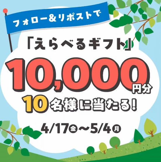 賞品:えらべるギフト1万円分(10名様)