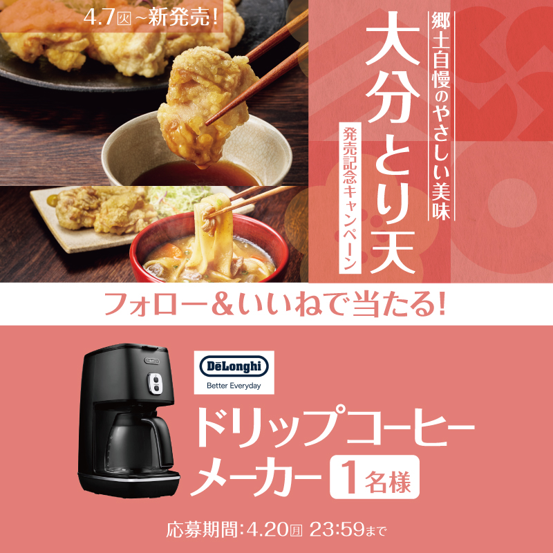 賞品:デロンギ ドリップコーヒーメーカー(1名様)