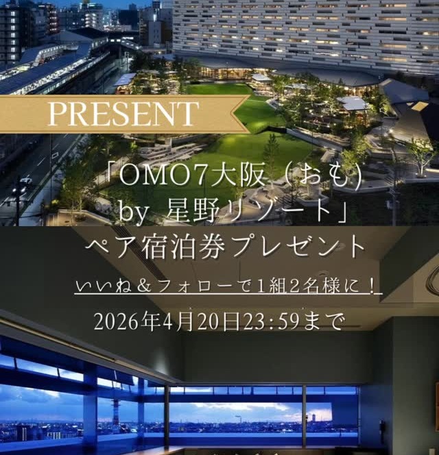 賞品:「OMO7大阪 by 星野リゾート」宿泊(1組2名様)
