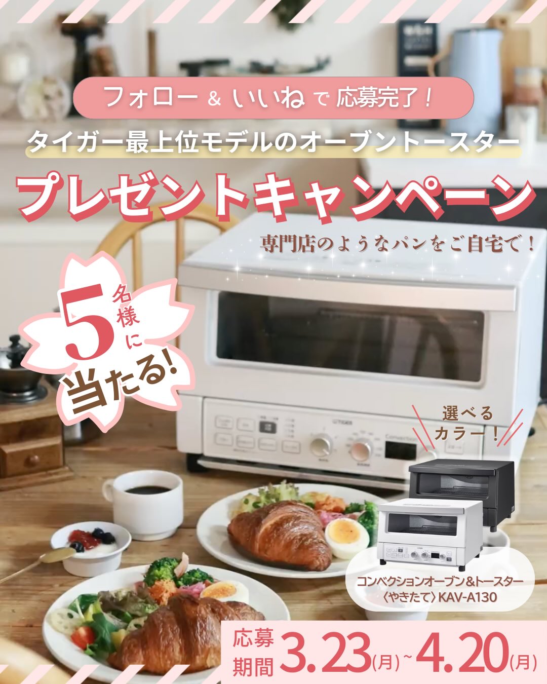 賞品:タイガー魔法瓶 コンベクションオーブン&トースター〈やきたて〉KAV-A130(5名様)