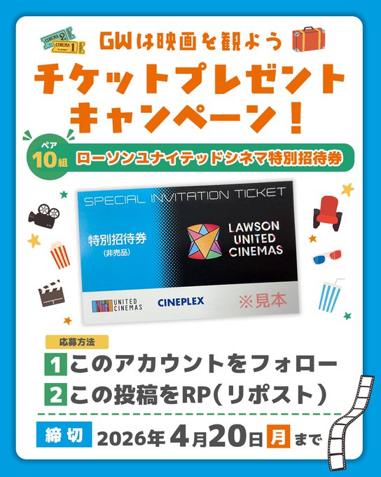 【X懸賞】ローソンユナイテッドシネマ特別招待券を10組様にプレゼント