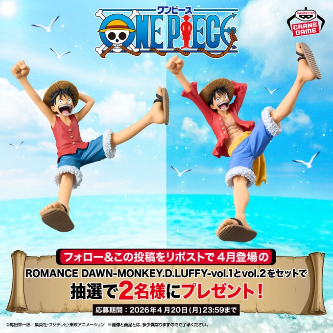 賞品:『ワンピース ROMANCE DAWN-MONKEY.D.LUFFY』vol.1とvol.2セット(2名様)