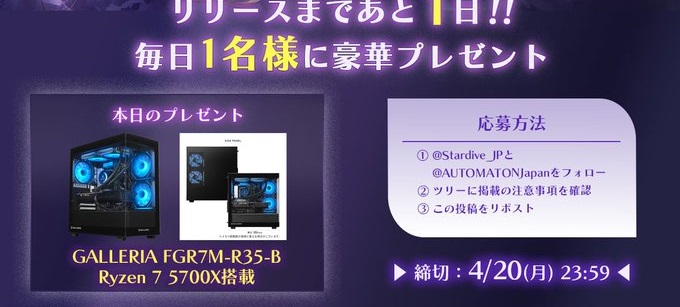 @Stardive_JPと@AUTOMATONJapanをフォロー&キャンペーン対象ポストをリポストしてご応募ください。