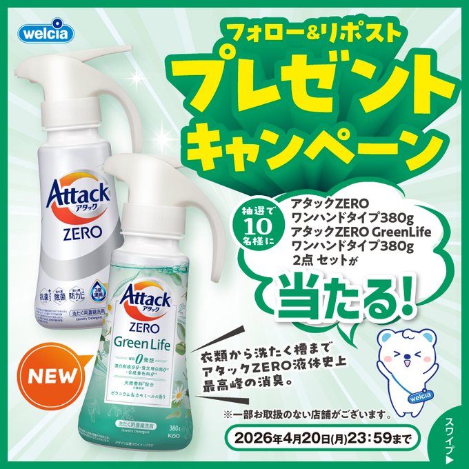 賞品:アタックZERO ワンハンドタイプ、Green Life ワンハンドタイプ(10名様)