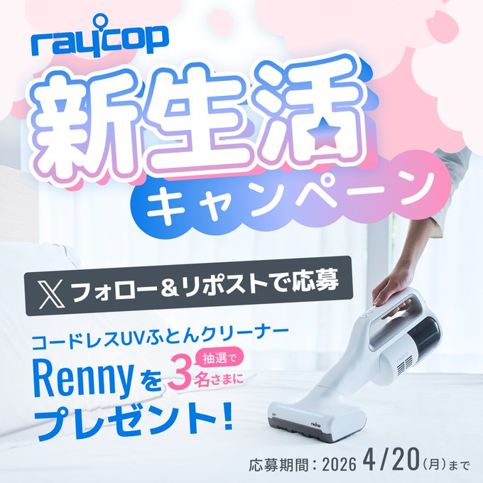 賞品:コードレスUVふとんクリーナー「Renny(レニー)」(3名様)