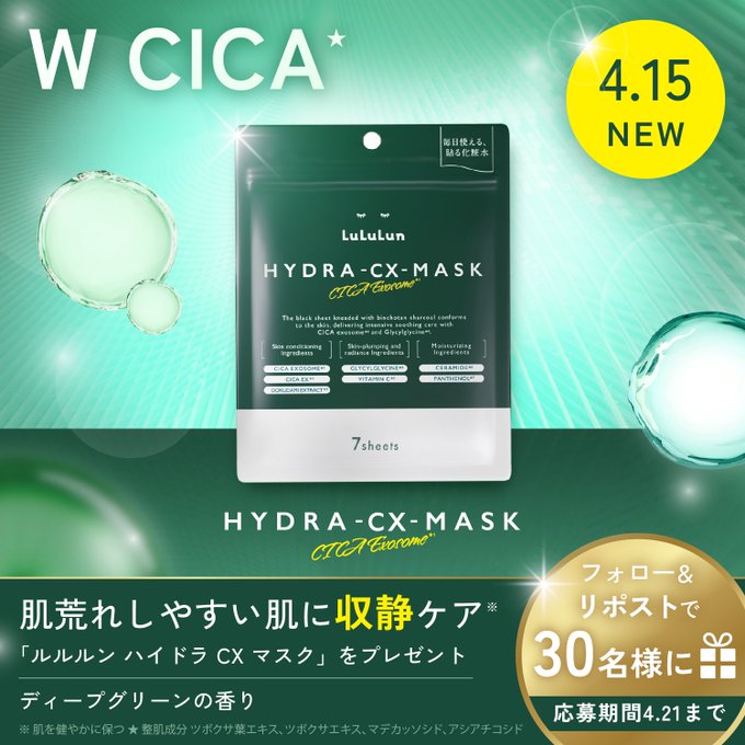 【X懸賞】ハイドラ CX マスクを30名様にプレゼント 2026.04.19ルルルン‐フォロー&リポストキャンペーン 賞品:ハイドラ CX マスク(30名様) 締切:2026年4月21日(火)公式X(Twitter)アカウントをフォロー&キャンペーン対象ポストをリポストしてご応募ください。※詳細はキャンペーンページにてご確認ください。応募はこちらから