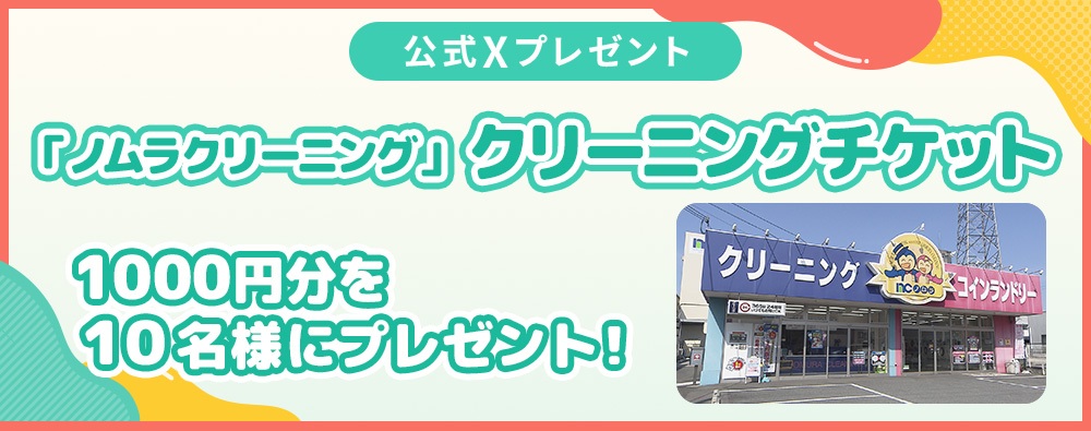 賞品:『ノムラクリーニング』クリーニングチケット1,000円分(10名様)