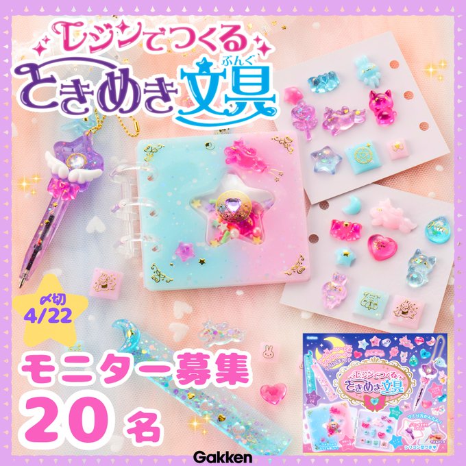 『レジンでつくる ときめき文具』を実際にお使いいただき、ご自身のX(旧Twitter)またはInstagramアカウントに、お子さまが本書を使用しているお写真や動画と、製作した作品のお写真やご感想をご投稿くださるモニター様を20名募集中。