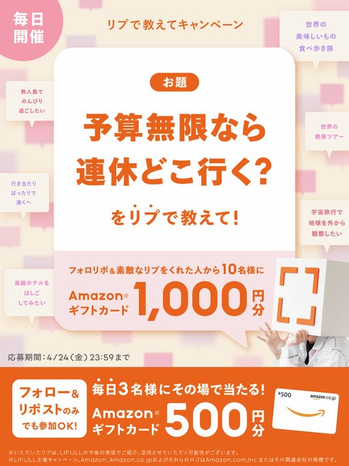 賞品:Amazonギフト券500円分(毎日3名様)