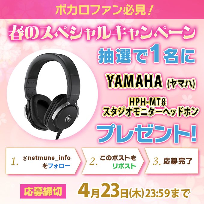 賞品:YAMAHA (ヤマハ) HPH-MT8 スタジオモニターヘッドホン(1名様)
