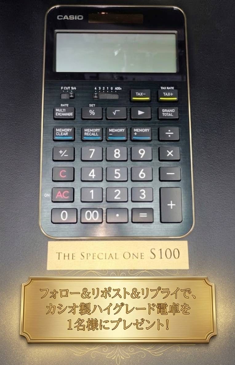 【X懸賞】CASIO プレミアム電卓 S100X-BKを1名様にプレゼント 2026.04.22ヨドバシ 札幌店‐プレゼントキャンペーン 賞品:CASIO プレミアム電卓「S100X-BK」(1名様) 締切:2026年4月23日(木)👉フォロー&リポスト👉電卓を選ぶ際のこだわりポイントを✍️※詳細はキャンペーンページにてご確認ください。応募はこちらから