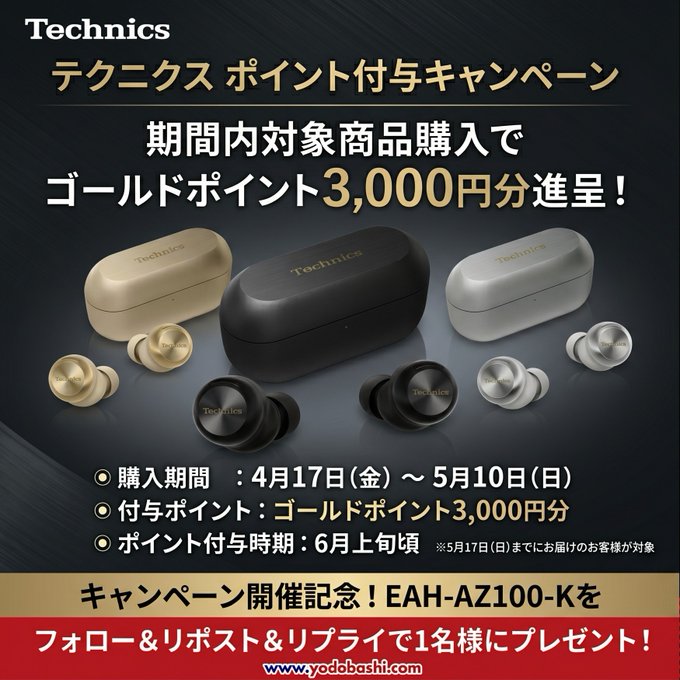 賞品:テクニクス EAH-AZ100-K ワイヤレスイヤホン(1名様)