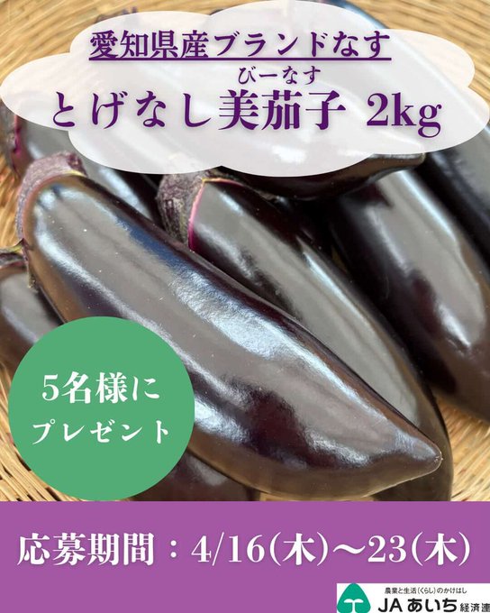 【X懸賞】とげなし美茄子を5名様にプレゼント