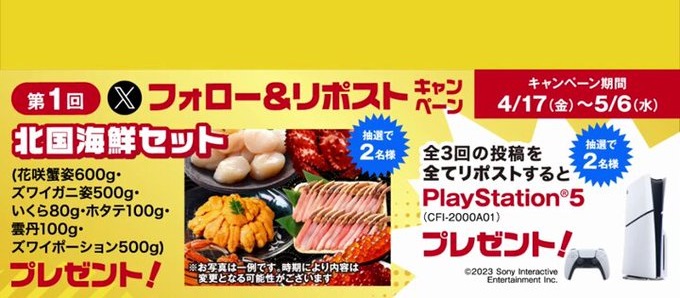 【X懸賞】北国海鮮セット、PlayStation 5を合計4名様にプレゼント