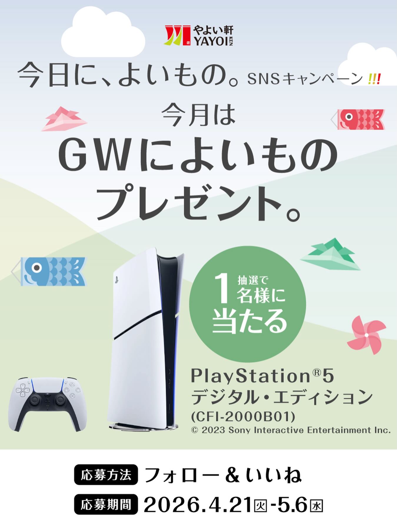 賞品:PlayStation®5 デジタル・エディション (CFI-2000B01)(1名様)