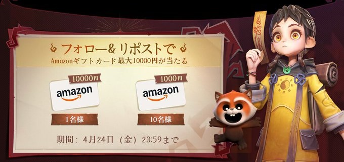 賞品:Amazonギフト券最大10,000円分(11名様)