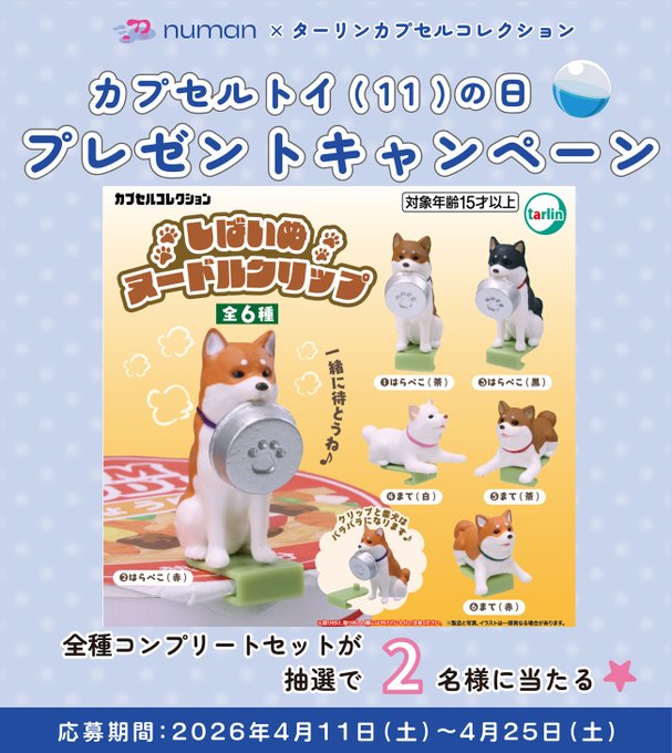 賞品:「しばいぬヌードルクリップ」全6種コンプリートセット(2名様)
