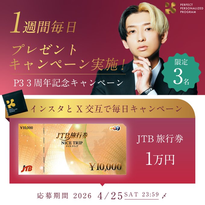 賞品:JTB旅行券1万円分(3名様)