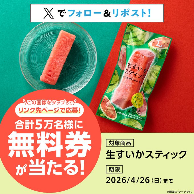 賞品:ローソンオリジナル冷凍食品 生すいかスティック 無料引換券(50,000名様)
