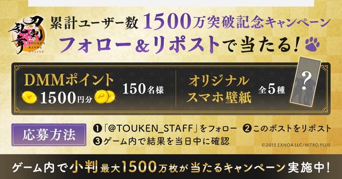 刀剣乱舞ONLINE 累計ユーザー数1500万突破記念