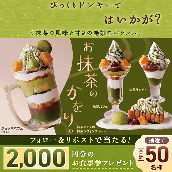 びっくりドンキーでお抹茶タイム 抹茶デザート発売記念キャンペーン