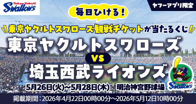 東京ヤクルトスワローズ観戦チケットが当たるくじを実施中。