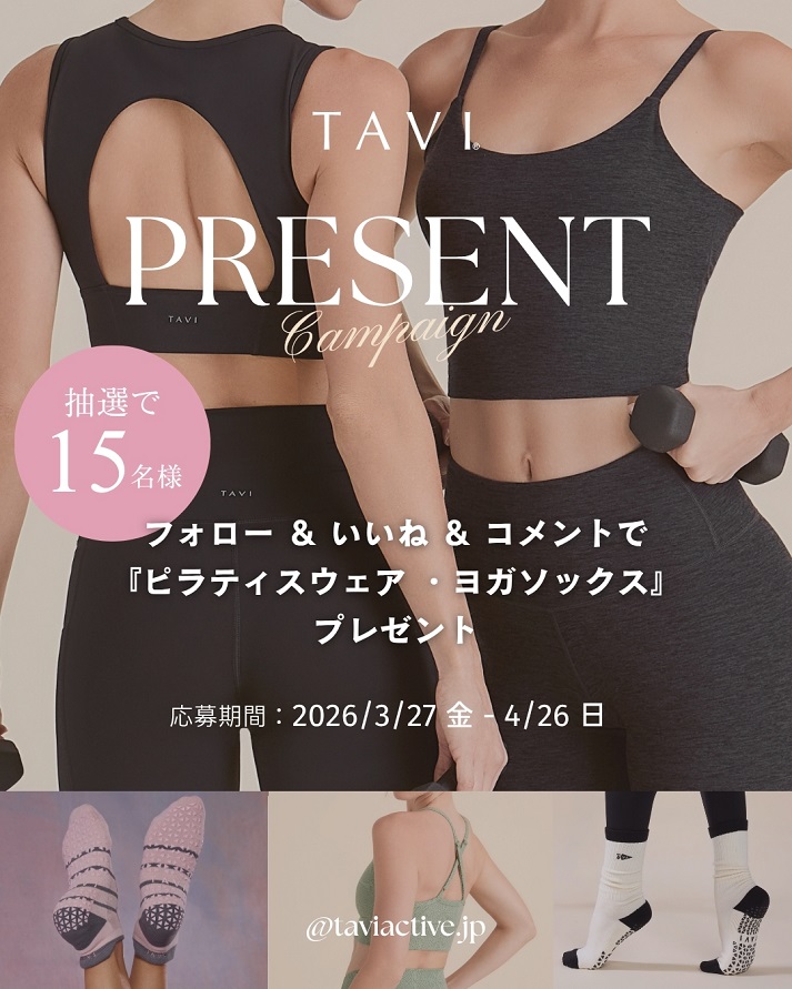 【Instagram懸賞】TAVI ピラティスウェア、グリップソックスを合計15名様にプレゼント
