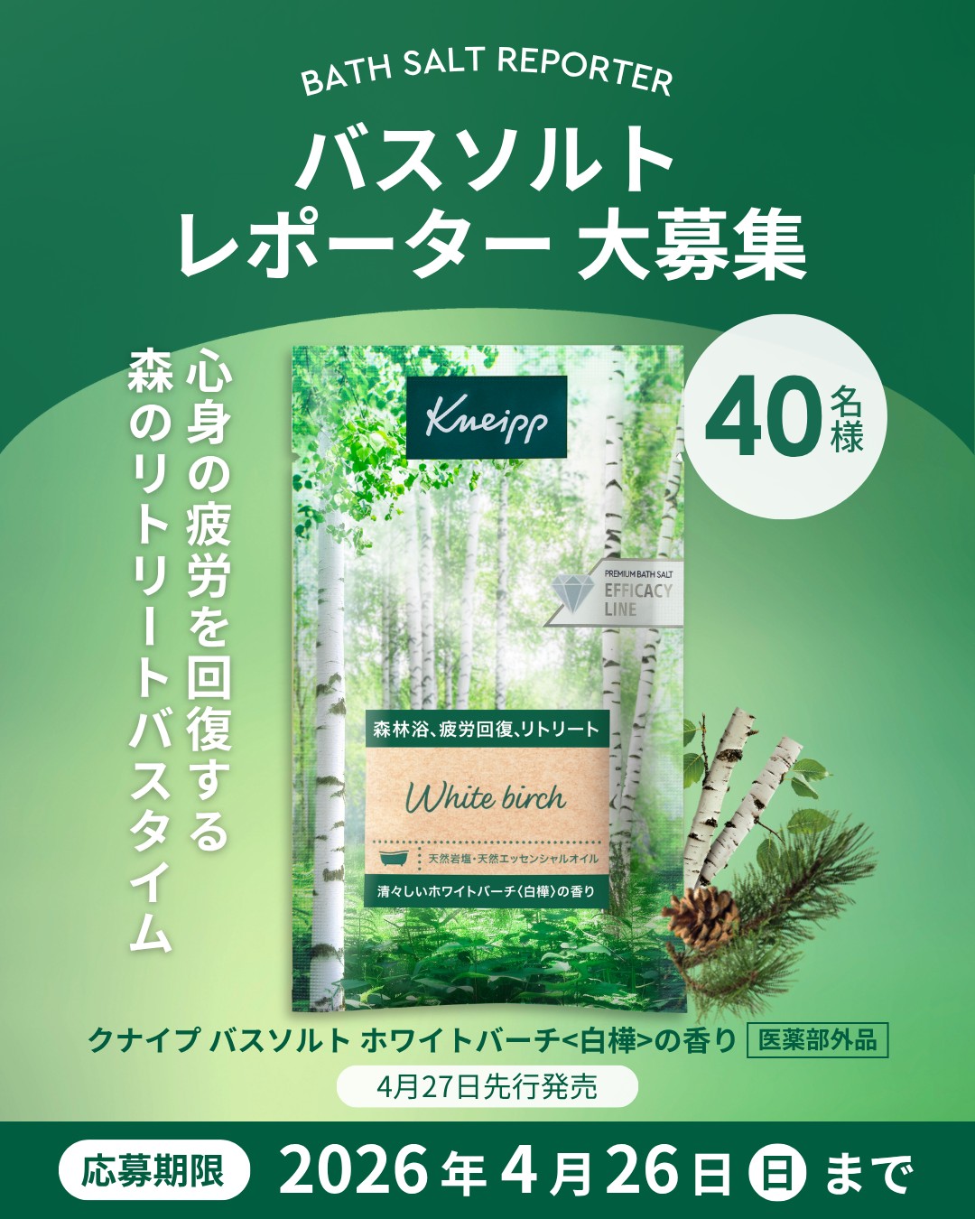 賞品:クナイプ バスソルト ホワイトバーチ<白樺>の香り 50g(40名様)