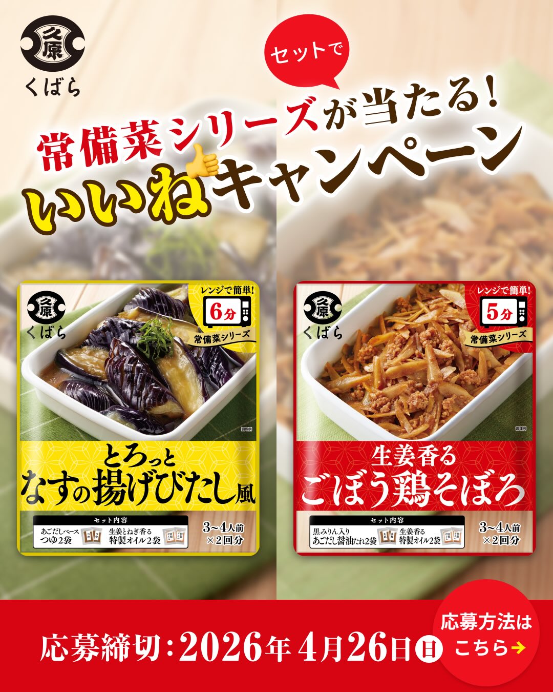 賞品:常備菜シリーズ(なすの揚げびたし風&ごぼう鶏そぼろ)(10名様)