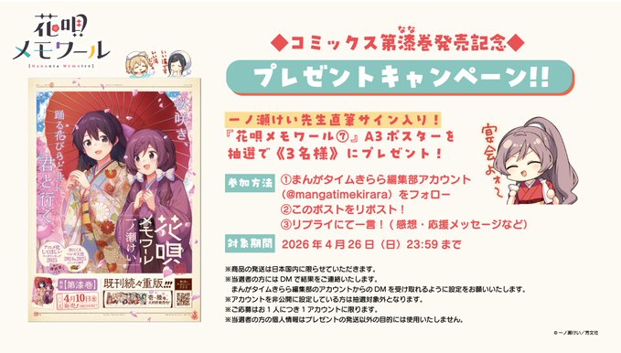 賞品:一ノ瀬けい先生サイン入りA3ポスター(3名様)