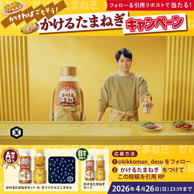 賞品:かけるたまねぎセット、オリジナルミニタオル(合計100名様)