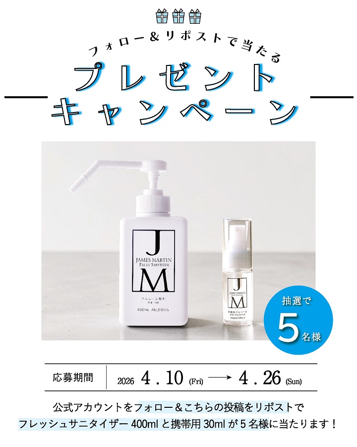 賞品:ジェームズマーティン フレッシュサニタイザー400ml&携帯用30ml(5名様)
