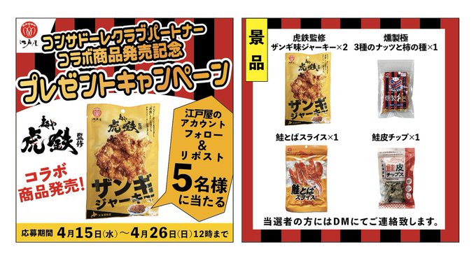㈱江戸屋‐麺や虎鉄監修「ザンギジャーキー」発売記念プレゼントキャンペーン