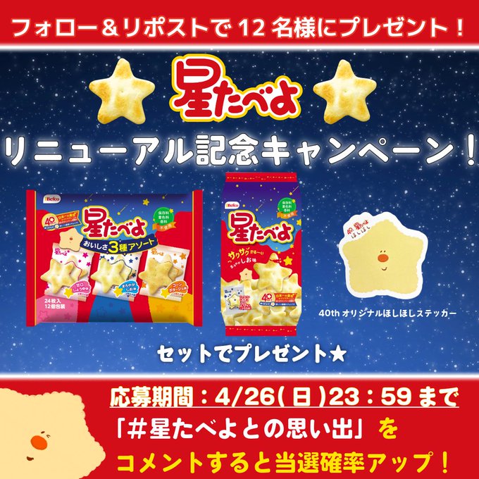 賞品:星たべよセット+40thオリジナルほしほしステッカー(12名様)