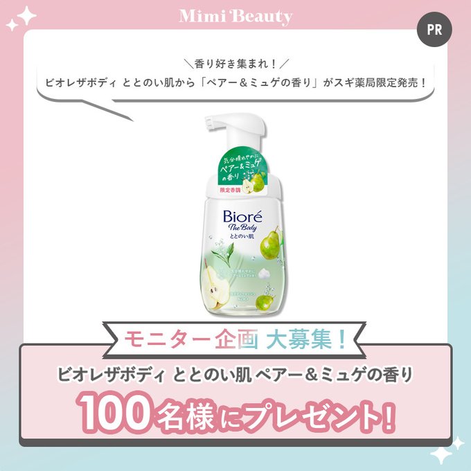 【X懸賞】ビオレザボディ ととのい肌 ペアー&ミュゲの香りを100名様にプレゼント 2026.04.24Mimi Beauty‐ガチモニター企画 賞品:ビオレザボディ ととのい肌 ペアー&ミュゲの香り(100名様) 締切:2026年4月26日(日)応募条件 ・商品体験頂ける方 ・公開のXアカウントをお持ちの方※詳細はキャンペーンページにてご確認ください。応募はこちらから