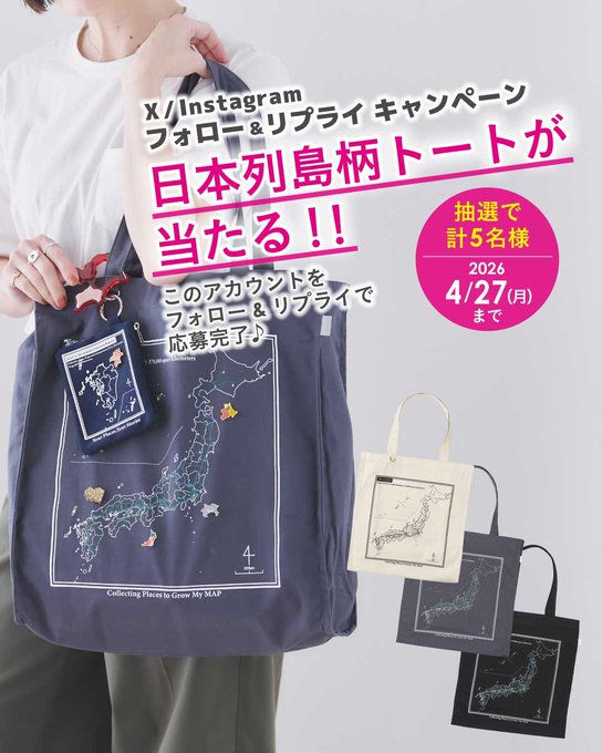 【X・Instagram懸賞】日本列島をデザインしたキャンバストートバッグを5名様にプレゼント