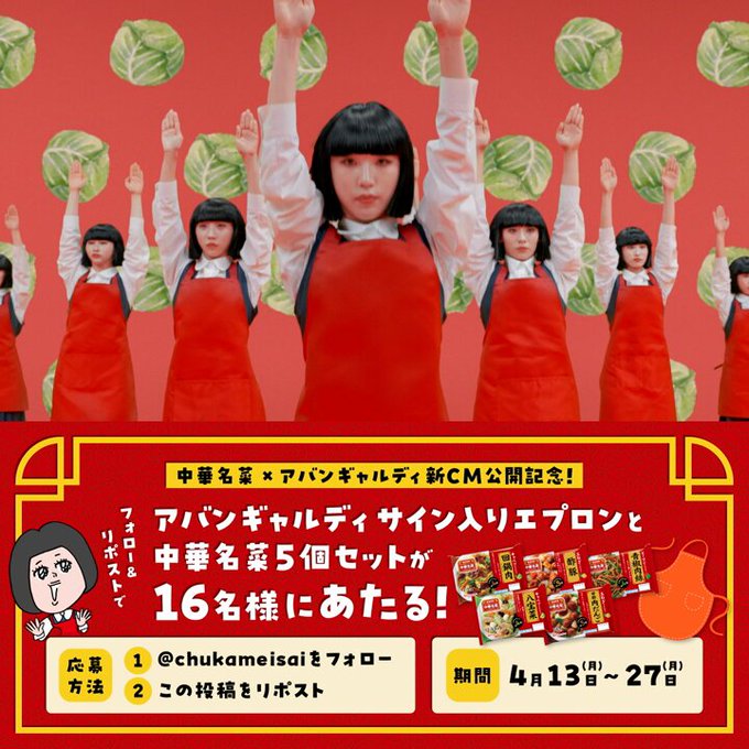 賞品:中華名菜 詰め合わせとアバンギャルディ サイン入り赤いエプロン(16名様)