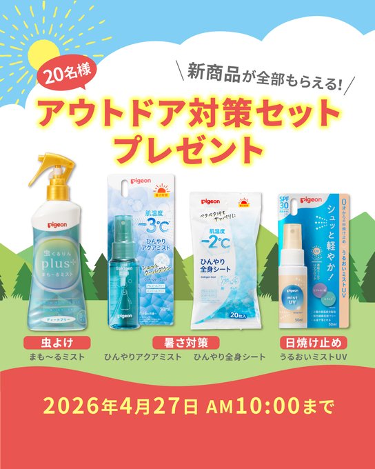 ピジョンインフォ‐新商品が全部もらえる!アウトドア対策セットプレゼントキャンペーン