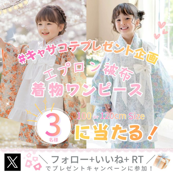 賞品:エプロン被布着物ワンピース サイズ100,120cm(3名様)