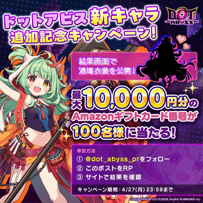 ドットアビス公式Xアカウントをフォロー&キャンペーン対象ポストをリポストして、キャンペーンページからご応募ください。