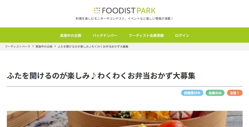 FOODIST PARK‐わくわくお弁当おかず大募集