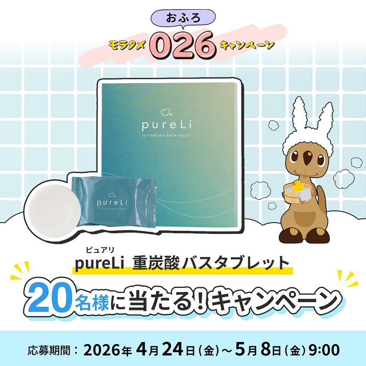pureLi 重炭酸入浴剤バスタブレットを20名様にプレゼント 2026.04.26モラタメ‐無料でモラえる 賞品:pureLi 重炭酸入浴剤バスタブレット(20名様) 締切:2026年5月8日(金)9:00ご応募には会員登録/ログインが必要です。※詳細はキャンペーンページにてご確認ください。応募はこちらから