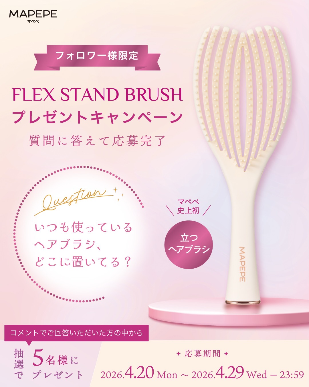 【Instagram懸賞】フレックススタンドブラシを5名様にプレゼント 2026.04.27MAPEPE‐プレゼントキャンペーン 賞品:フレックススタンドブラシ(5名様) 締切:2026年4月29日(水)①マペペ公式Instagramアカウントをフォロー ②質問にコメント※詳細はキャンペーンページにてご確認ください。応募はこちらから
